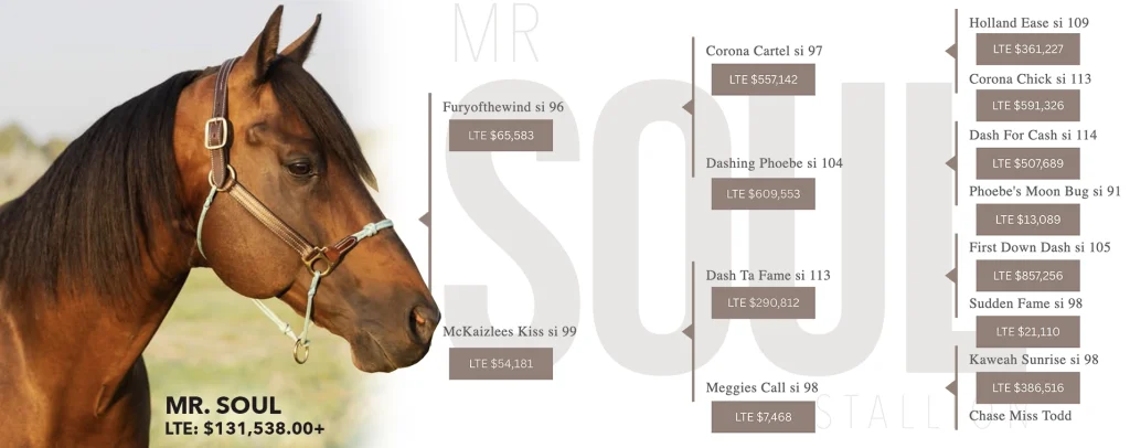 Mr. Soul’s progeny continue to build an impressive record of earnings and arena success, with a promising group of young horses scheduled to compete throughout the summer of 2026 and expected to perform well.